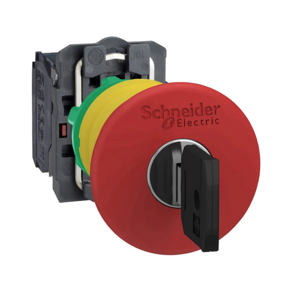 BOUTON D’ARRÊT D’URGENCE PLASTIQUE – Ø22 – CONTACT O+F (DÉVERROUILLAGE PAR CLÉ)