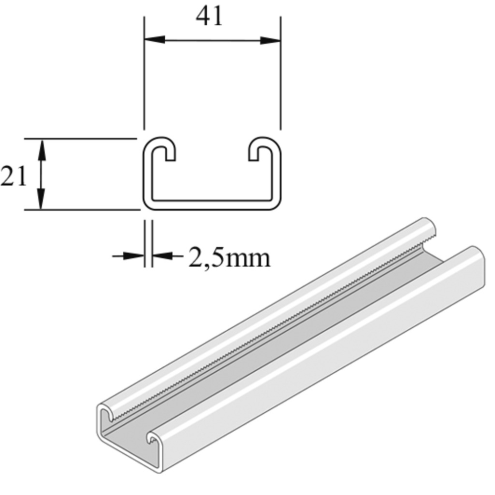 RAIL PLEIN – 21X41 – ÉPAISSEUR 2,5 MM – L3000